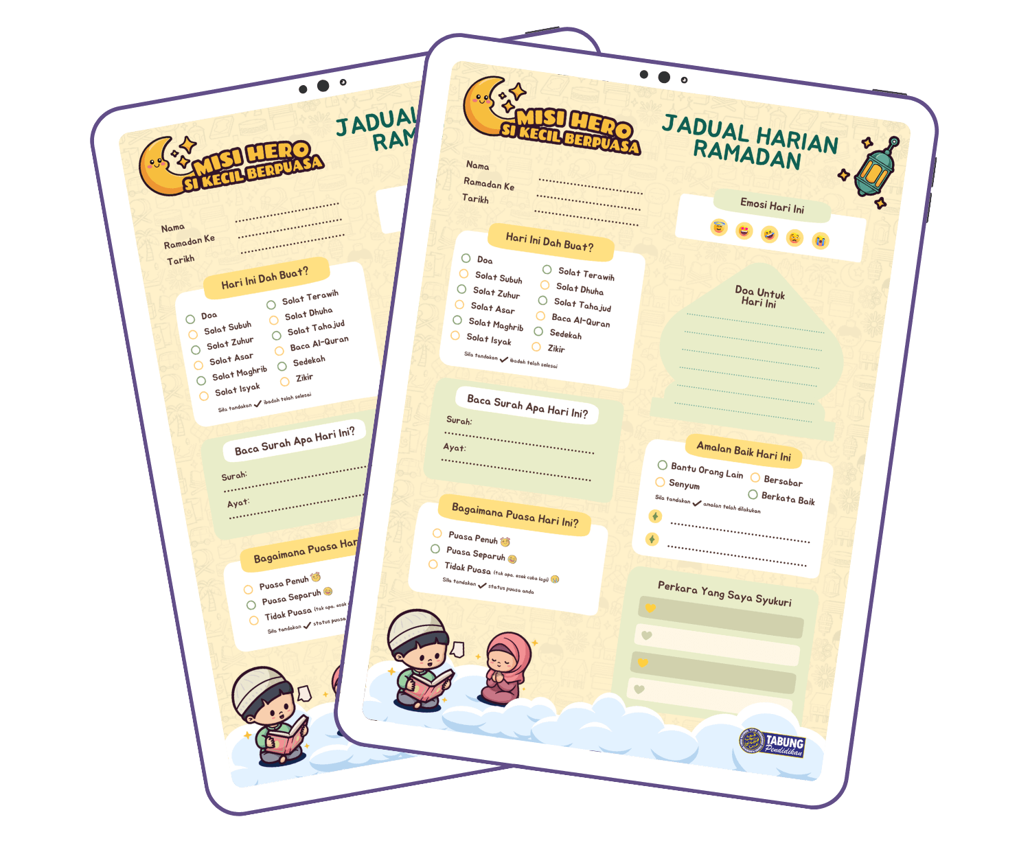 Ibu ayah boleh cetak jadual ini untuk mereka lengkapkan amalan harian sepanjang bulan Ramadan ini.