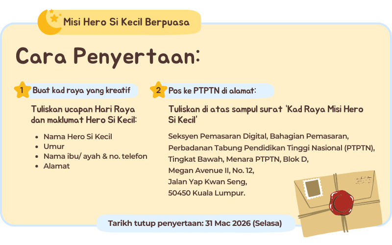 Istimewa buat 150 kad raya yang terawal diterima, kami akan membalas dengan kad raya eksklusif Edisi Terhad PTPTN!